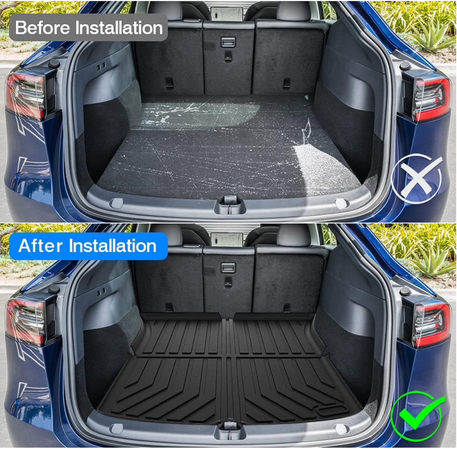 This item is new in open box. Please see photos. About this item Custom Fit——These cargo liners sets are only fit for Tesla Model Y 2020 2021 2022 2023 5 passengers(Not fit for 7 seaters models) highly precision model design, fits the edges exactly and totally matches the interior contours. According to the car size design, 100% fits your car. Premium Material——Advanced TPE process,durability,elasticity,scratch-resistant and easy to clean.100% odourless,not any harmful substances,let you and your family stay healthy inside the car. Non-slip and Waterproof——Provide Non-slip and Waterproof protection to prevent things from moving while driving and any damage to your car trunk liner for full cargo protection.No worrying about anywhere with water,snow,ice,dirty,grease,drink making your car dirty. Easy & Quick clean by a damp cloth or water and make it look new for a long service life. All-round Protection——3-pieces trunk mat provides all round protection for your 2020-2023 Tesla model y.All-round and all-weather protection.The high edge and grid lines can carry more dust, mud, liquid and debris against spill. Removal of any messes are made easy thanks to the configuration of the grooves. Easy To Install——The frunk trunk mat and rear trunk and rear storage mat will not scratch your car.Easy to install or remove.Our exclusive material help keep your liners securely in place. Color: Black Brand: T TGBROS Material TPE Vehicle Service Type Passenger Car Auto Part Position Rear Fit Type Vehicle Specific Fit