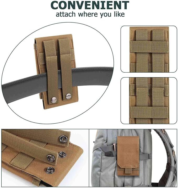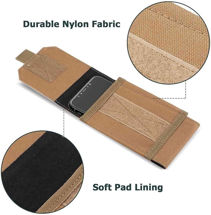 This tactical phone pouch is a game-changer for outdoor adventures! The rugged 800D nylon exterior keeps my phone safe from water and wear, while the soft fleece lining prevents scratches. The adjustable MOLLE straps make it super versatile—I can attach it to my belt, vest, or backpack with ease. Perfect for hiking, camping, or work, it stays secure and accessible. Lightweight yet tough, it’s a must-have for anyone who needs hands-free convenience without sacrificing durability. Love how it blends functionality with tactical style!