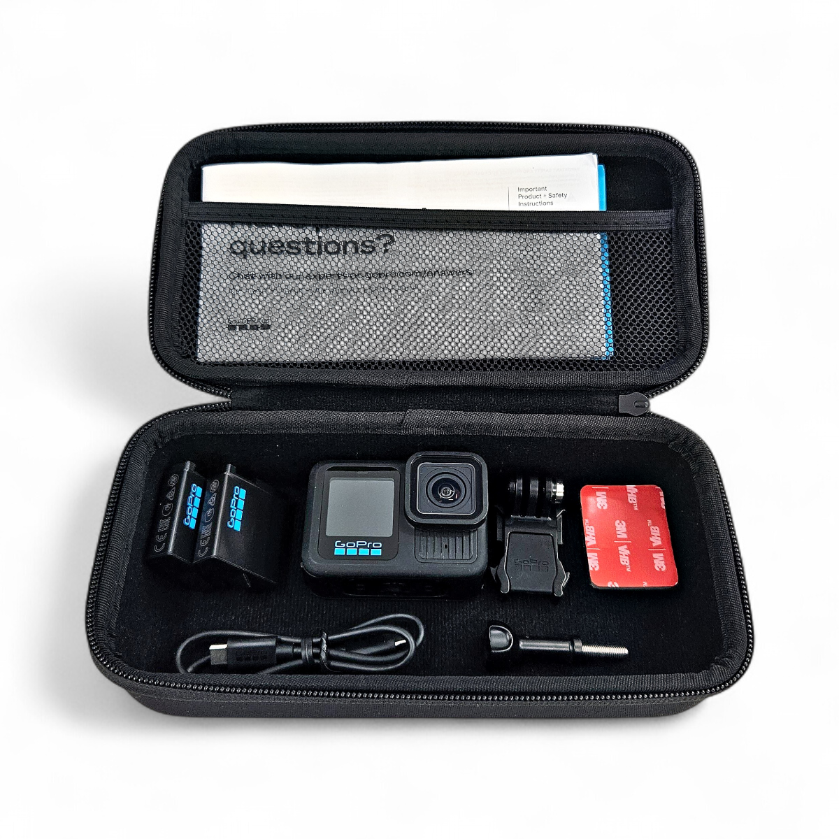 eBay Listing GoPro HERO 13 Black 5.3K HDR 27MP Camera 2 Battery Bundle CHDCB-131-RT 2024 Package Contents (1) GoPro HERO 13 Black 5.3K HDR 27MP Camera 2 Battery Bundle CHDCB-131-RT 2024 (1) (2) Rechargeable Battery (1) Curved Adhesive Mount (1) Genuine GoPro Hard Shell Camera Case #ABMIN-001 (1) Mounting buckle (1) Original Box (1) Thumbscrew (1) USB-C Cable Does Not Include (1) 128GB MicroSD Card Description Product Summary The GoPro HERO 13 Black captures stunning 5.3K HDR video and 27MP photos . This bundle includes two batteries , ensuring you're ready for extended shooting sessions. Product Condition Appearance: The camera shows light scuffs and scratches throughout the front screen and casing , indicating previous use. Functionality: The camera is fully functional and ready to capture your adventures. Technical Specifications Video Resolution: 5.3K HDR Photo Resolution: 27MP Model: CHDCB-131-RT Year: 2024 Additional Notes This GoPro HERO 13 Black is perfect for capturing high-quality video and photos in a variety of environments. The included extra battery ensures you can keep shooting for longer. Product Info Brand GoPro Color Black Features HDR, 2 Batteries Model HERO 13 Black MPN CHDCB-131-RT Recording Definition 5.3K Series HERO Type Action Camera Payment Please read the entire description prior to making a purchase. Unfortunately, transactions cannot be cancelled after payment has been made. Purchases by resellers are subject to cancellation at our discretion. Taxes are collected by eBay and details are provided at checkout. Shipping We ship from multiple locations across the US and items ship within 1 business day of cleared payment. Items can only be shipped to the lower 48 United States. FedEx packages cannot be shipped to P.O. Boxes, APO/FPO, Hawaii, Guam, Puerto Rico, or Alaska. We do not ship outside of the United States, or to freight forwarding companies. We do not sell products to resellers. Bidding on or attempting to purchase our items if you live in any of these locations or meet these restrictions will result in your payment being refunded and the transaction canceled. Items are shipped from multiple locations throughout the United States. Combined shipping is not guaranteed, even if multiple items are paid with the same payment. Unfortunately, local pick-up is not available. All items above $750 require a signature at delivery. All packages that are returned to us by a carrier as undeliverable are subject to an additional shipping charge to re-ship the item. If we attempt to contact a buyer and do not receive a response within 3 days of receiving the item, the transaction will be subject to cancellation. Please make sure the ship to address is correct at the time of payment. We are not responsible for packages that are shipped to the incorrect address due to buyer error. In the checkout process, a phone number must be added since our delivery company requires this for all packages.