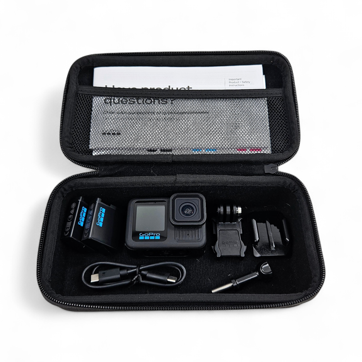 eBay Listing GoPro HERO 13 Black 5.3K HDR 27MP Camera 2 Battery Bundle CHDCB-131-RT 2024 Package Contents (1) GoPro HERO 13 Black 5.3K HDR 27MP Camera 2 Battery Bundle CHDCB-131-RT 2024 (1) (2) Rechargeable Battery (1) Curved Adhesive Mount (1) Genuine GoPro Hard Shell Camera Case #ABMIN-001 (1) Mounting buckle (1) Original Box (1) Thumbscrew (1) USB-C Cable Does Not Include (1) 128GB MicroSD Card Description Product Summary This GoPro HERO 13 Black captures stunning 5.3K HDR video and 27MP photos . It includes two batteries for extended shooting time, ensuring you never miss a moment. Product Condition Appearance: The camera has a cracked rear screen that is still functional. The front screen has light scratches , and there are light scuffs on the casing . Functionality: Despite the cosmetic issues, the camera remains fully functional. Technical Specifications Model: HERO 13 Black Video Resolution: 5.3K HDR Photo Resolution: 27MP Year: 2024 Additional Notes This bundle includes two batteries. Product Info Brand GoPro Color Black Features HDR, 27MP Photo Model HERO 13 Black MPN CHDCB-131-RT Recording Definition 5.3K Series HERO Type Action Camera Payment Please read the entire description prior to making a purchase. Unfortunately, transactions cannot be cancelled after payment has been made. Purchases by resellers are subject to cancellation at our discretion. Taxes are collected by eBay and details are provided at checkout. Shipping We ship from multiple locations across the US and items ship within 1 business day of cleared payment. Items can only be shipped to the lower 48 United States. FedEx packages cannot be shipped to P.O. Boxes, APO/FPO, Hawaii, Guam, Puerto Rico, or Alaska. We do not ship outside of the United States, or to freight forwarding companies. We do not sell products to resellers. Bidding on or attempting to purchase our items if you live in any of these locations or meet these restrictions will result in your payment being refunded and the transaction canceled. Items are shipped from multiple locations throughout the United States. Combined shipping is not guaranteed, even if multiple items are paid with the same payment. Unfortunately, local pick-up is not available. All items above $750 require a signature at delivery. All packages that are returned to us by a carrier as undeliverable are subject to an additional shipping charge to re-ship the item. If we attempt to contact a buyer and do not receive a response within 3 days of receiving the item, the transaction will be subject to cancellation. Please make sure the ship to address is correct at the time of payment. We are not responsible for packages that are shipped to the incorrect address due to buyer error. In the checkout process, a phone number must be added since our delivery company requires this for all packages.