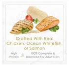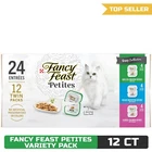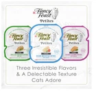 Purina Fancy Feast Gourmet Wet Cat Food Variety Pack Purina Fancy Feast Gourmet Wet Cat Food Variety Pack Product Description Triple your cat's delight with the three inspired wet cat food pate recipes in the Purina Fancy Feast Petites Pate Collection gourmet wet cat food variety pack. It’s easy to get your novelty-seeking feline’s attention when she hears you snap apart the two single-serve cat food twin packs in each convenient tub. Our pate cat food variety pack includes an Ocean Whitefish and Tuna entree pate, a Wild Alaskan Salmon cat food entree pate, and a Braised Chicken cat food entree pate. Each mouthwatering Fancy Feast pate wet cat food selection presents your discerning companion with a delicate, soft cat food texture she can blissfully nibble. Fancy Feast Petites wet cat food for adult cats give her a perfect serving to appease her cravings without leaving you with a refrigerator full of half-empty cat food cans. Purina Fancy Feast pate variety packs make it easy to always have a tempting array of irresistible flavors and varieties on hand when your little princess is in the mood for a dining experience fit for royalty.