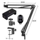Description Flexible Arm Tripod For Phone Stand Table Folded Anchor 360° Rotation Online Desktop Laptop Video Live Overhead Shot Photography Features: The phone holder is 360-degree adjustable with flexible long gooseneck arms that easily adjust to a comfortable viewing angle. The phone clip has a sturdy clip with a width of 2.4in-3.7in to hold your phone securely. With just a few steps, it's easy to install on furniture such as desks and bookshelves. With 1/4 screw, compatible with camera/phone/microphone/LED ring light. With a bluetooth remote control, you can control your phone to take pictures within 10 meters. Mobile phone clip width: 55-85mm Bracket Arm adjustable height: 35-85cm Material: Aluminum Package Inlcude: Only Arm: 1 x Arm Bracket 1 x Clamp Clip Full Set: 1 x Arm Bracket 1 x Clamp Clip 1 x Phone Clip 1 X 360 degree rotating ball head 1 X Remote Shutter