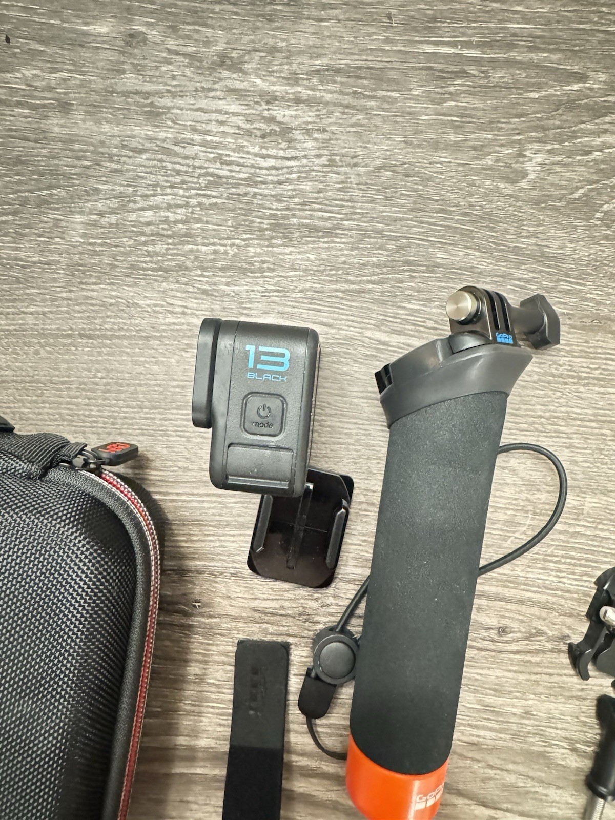 GoPro Hero 13 Black with extras. - 4 batteries - 512 GB Samsung Pro Plus SD Card - GoPro Waterproof shutter remote - Charging Base - Multiple screw mounts - The Handler Floating hand grip - Waterproof GoPro Case - Storage case, fits everything