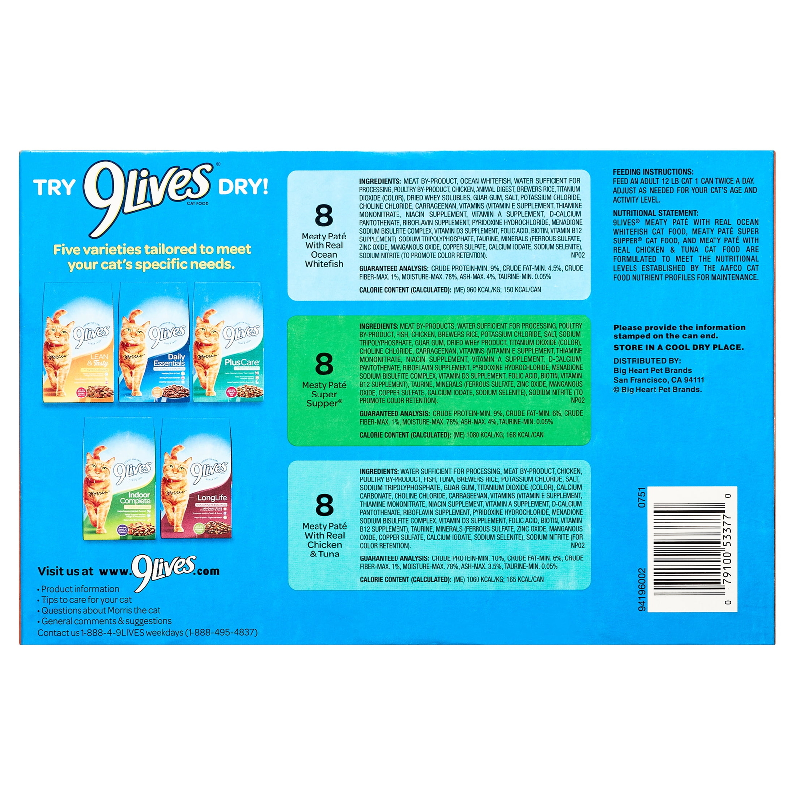 Indulge your cat with the every tender bite of 9Lives Seafood and Poultry Favorites Variety Pack cat food. Three savory combinations with seafood and real ground chicken in an irresistible sauce give your cat the taste they love with the nutrition he needs for a long, healthy life. 100% complete nutrition for kittens and adult maintenance Meaty Pate With Real Chicken & Tuna (8 Cans) Meaty Pate With Real Ocean Whitefish (8 Cans) Meaty Pate Super Supper (8 Cans) Moist and tender grounds
