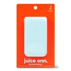 Onn Portable Battery 8K mAh - Aqua Charges smartphones, tablets, and USB-charged devices Provides 2 extra charges Portable power for use with Apple iPhone, Samsung Galaxy, Google Pixel, and other devices LED charging indicator Rated capacity: 8000mAh/3.7V; actual capacity: 4700mAH/5V Over-charge/discharge/voltage/current/heat & short-circuit protection Input: DC 5V/2A Output: DC 5V/2.4A Juice onn. What's in the box: 1 Portable Battery, 1 micro-USB to USB charging cable 1 ft (30.5 cm)