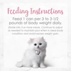 Delight your cat every day with wet kitten food. wet kitten food recipes are prepared especially for the delicate palates and special needs of kittens. Each 100% complete and balanced kitten food starts with high-quality ingredients, like tender turkey or ocean whitefish. Every entrée is served as a smooth, savory paté sure to delight. And like all entrées, wet kitten food recipes always offer unsurpassed taste and nutrition Kitten Classic Pate Collection Cat Food 12-3 oz. Cans Each 12-count package contains six 3-ounce cans of Kitten Tender Ocean Whitefish Feast, six 3-ounce cans of Kitten Tender Turkey Feast Just a touch of real milk creates a creamy texture for kittens 100% complete and balanced grain-free formula High-quality ingredients like real turkey and ocean whitefish impart a delicious flavor Smooth paté recipe provides tender texture kittens love Essential vitamins and minerals help support kitten health