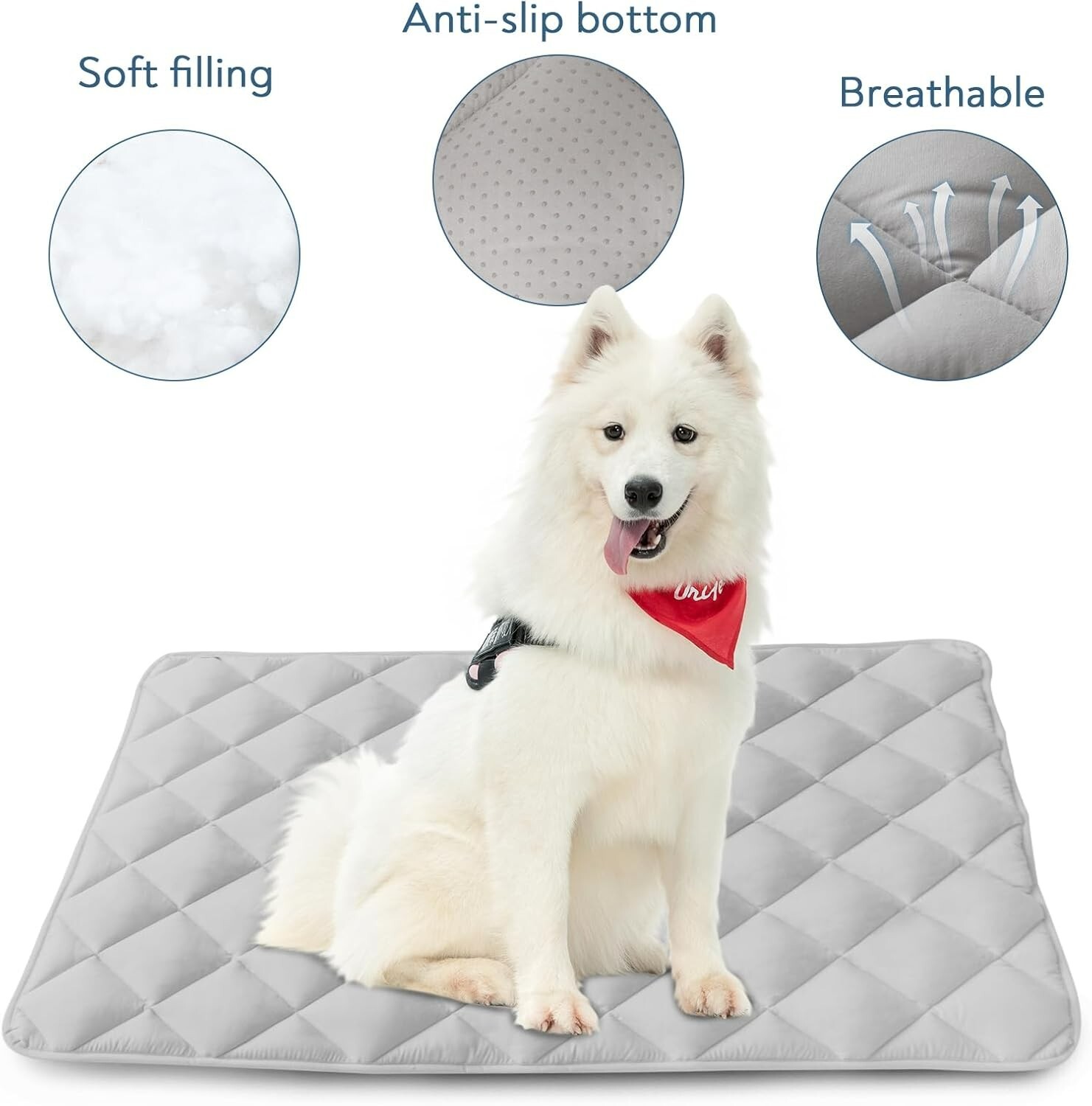 Product description Dimensions & Contents: 1. Measures 24" x 18", works great as beds for your small dogs , fit for dogs weighing 12 to 25 pounds such as Pug, Shih Tzu, Chihuahua. etc. 2. Measures 30" x 19", works great as beds for your medium dogs , fit for dogs weighing 25 to 40 pounds such as Dachshund, French Bulldog, American Pit Bull Terrier. etc. 3. Measures 36" x 23", works great as beds for your large dogs , fit for dogs weighing 40 to 65 pounds such as Beagle, Bulldog, Australian cattle dog. etc. 4. M easures 42" x 28", works great as beds for your extra large dogs, fit for dogs weighing 70 to 90 pounds such as Golden Retriever, Labrador Retriever, Standard Poodle. etc. Non-Slip Bottom: The non-skid bottom prevents moving and shifting and works great on hardwood floors, will keep your dog safe when nap on the mat, the dog runs back and forth on the mat and does not get hurt easily when playing. Super comfortable surface will offer a better relax. Comfortable Material: Soft polyester material top surface, middle is filled with soft polyester, which is not easy to deform, polyester knitting fabric with anti-slip silica gel bottom.This crate pads for dog cages can also help them ease anxiety and protect their joint well. Easy Clean: The dog bed for crate is machine washable or gently brush with some detergent for local cleaning, will keep in original shape after times of washing. It can be used and reused after washing. Satisfaction Service: We will do our best to serve you until you are satisfied. If for any reason you are not satisfied with your 2 pack dog crate pad, please tell us directly. Handling & Delivery We offer Free Shipping on all orders! Your order will be shipped within 2 working days after receiving payment. In an unlikely event that your order is lost or damaged in transit, it is eligible for full refund or replacement. We ship to continental US address ONLY, we are unable to ship to PO Boxes or APO/FPO addresses. Return Policy If you are not satisfied when you receive your item, please contact us for a replacement or money back. If the item is defective, we will send you a replacement without any extra charge, or offer a full refund after we receive the defective item, but return shipping should be paid by buyer. All items qualify for returns within 30 days of receipt. Returned packages must be the original package. Contact us We will respond emails within 24 hours, within 36 hours on weekend.