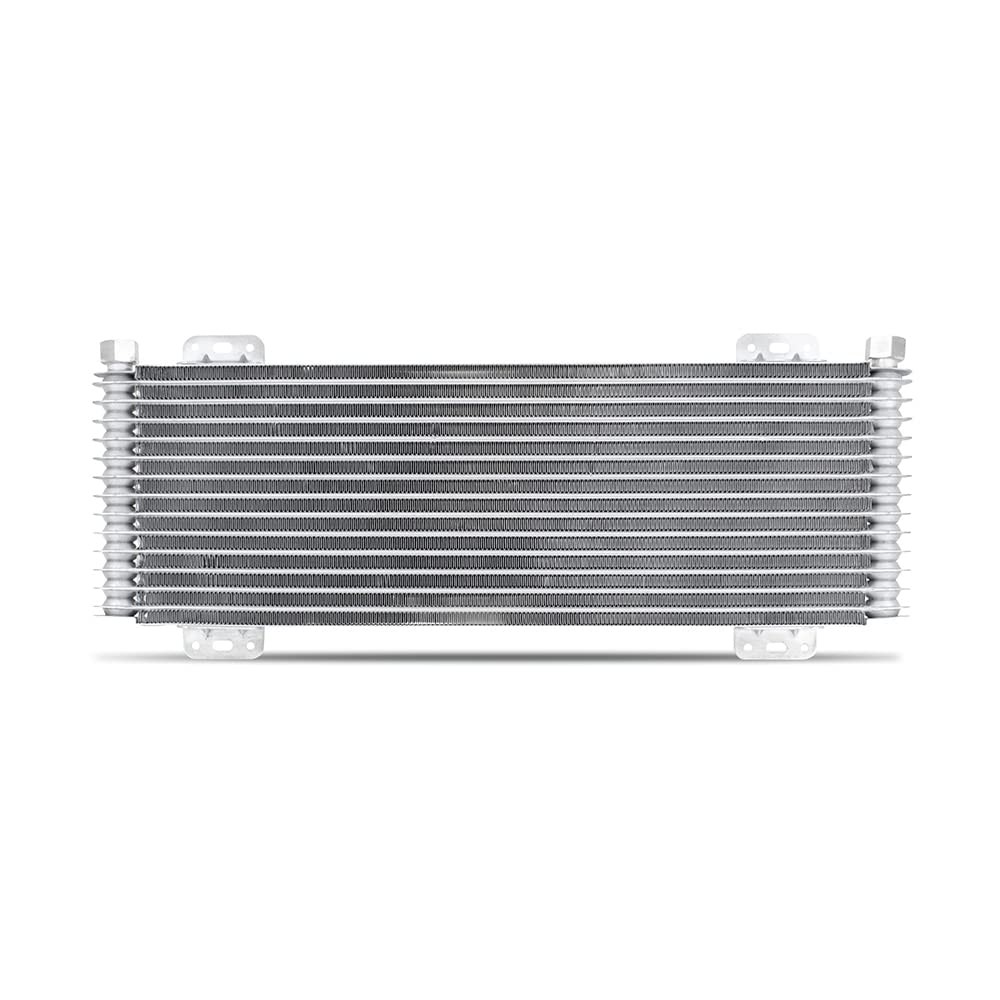 Mishimoto Universal Fit Transmission Cooler, 13-Row Stacked Plate, Black Product Details Universal Compatibility:13-row stacked-plate core with universal mounting brackets fits cars, trucks, SUVs, and tow rigs. Easy direct-fit install across a wide range of vehicles Superior Cooling Efficiency: High-efficiency core designed to reduce transmission fluid temps during towing, hot weather, or stop-and-go driving. Rated for 40,000 GVW Rock-Solid Durability: Corrosion-resistant aluminum core with powder-coat finish, SAE J1532 hose, stainless-steel clamps, abrasion-resistant sleeve, and O-ring sealed adapters for reliable, leak-proof operation Complete Installation Kit: Includes 3/4"–16 male to 3/8" barb fittings, 50" SAE J1532 hose, hose protection sleeve, universal mounting hardware, and hose-barb unions, everything needed for straightforward installation. Peace of Mind: Constructed with high-performance materials and backed by Mishimoto's high standards for durability and quality Mishimoto’s Universal 13 Row Stacked Plate Transmission Cooler delivers enhanced performance, durability, and flexibility for demanding applications. Ideal for towing, climbing, and high-heat driving, it helps maintain optimal transmission fluid temperatures to protect your drivetrain under pressure. Rated for up to 40,000 GVW, it supports trucks, SUVs, performance vehicles, and tow rigs.Built from corrosion-resistant aluminum and finished with a protective powder coat, the cooler stands up to extreme conditions. The kit includes a 50″ SAE J1532 spiral-reinforced hose, abrasion-resistant sleeve, stainless-steel worm-gear clamps, and O-ring sealed adapters (¾″–16 female to 3/8″ barb) for secure, OEM-grade connections.Universal brackets and mounting hardware ensure easy, flexible installation—no extra parts required. As towing and heavy-duty use become more common, stock cooling systems are often pushed to their limits. Overheated transmission fluid can lead to premature wear and costly repairs.Adding this auxiliary cooler is a simple, cost-effective upgrade that boosts reliability, extends transmission life, and improves performance. Since 2005, Mishimoto has delivered precision-engineered cooling solutions. This stacked-plate transmission cooler continues that tradition with a rugged, high-performance design that’s ready for any journey.