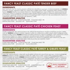 Fill your cat's dish with the savory flavors she loves when you offer her selections from this Purina Fancy Feast Poultry & Beef Classic Pate Collection wet cat food variety pack. Three delicious recipes featuring real, high-quality turkey, chicken or beef provide your cat companion with a host of mealtime options, and the smooth, tender texture invites her to happily nibble to her heart's content. Each gourmet wet cat food recipe delivers a flavor-filled dining experience your feline friend is sure to appreciate, while the grain-free formulas let you feel good about the foods you present to your precious feline. She gets essential vitamins and minerals in every serving, along with the tastes she can't get enough of. Serve up a different entree from this variety pack at every feeding, and watch as she delights in every delectable bite. The next time you make your shopping list, don't forget to add Purina Fancy Feast, and give your cat the quality she deserves along with the tastes she adores. Purina Fancy Feast Classic Pate Wet Cat Food Variety Pack, 3 oz Cans (30 Pack) Made with turkey, chicken or beef Three different recipes for the variety your cat loves Provides 100 percent complete and balanced nutrition for adult cats Pleasing pate texture Essential vitamins and minerals in every serving Ingredients Classic Pate Tender Beef Feast: Beef, Meat Broth, Liver, Fish, Meat By-Products, Artificial And Natural Flavors, Guar Gum, Tricalcium Phosphate, Salt, Minerals [Potassium Chloride, Magnesium Sulfate, Zinc Sulfate, Ferrous Sulfate, Copper Sulfate, Manganese Sulfate, Potassium Iodide], Taurine, Vitamins [Thiamine Mononitrate (Vitamin B-1), Vitamin E Supplement, Niacin (Vitamin B-3), Calcium Pantothenate (Vitamin B-5), Vitamin A Supplement, Menadione Sodium Bisulfite Complex (Vitamin K), Pyridoxine Hydrochloride (Vitamin B-6), Riboflavin Supplement (Vitamin B-2), Vitamin B-12 Supplement, Biotin (Vitamin B-7), Folic Acid (Vitamin B-9), Vitamin D-3 Supplement], Sodium Nitrite (To Promote Color Retention). C-6679. Classic Pate Chicken Feast: Chicken, Poultry Broth, Liver, Meat By-Products, Fish, Artificial And Natural Flavors, Tricalcium Phosphate, Guar Gum, Added Color, Salt, Minerals [Potassium Chloride, Magnesium Sulfate, Zinc Sulfate, Ferrous Sulfate, Copper Sulfate, Manganese Sulfate, Potassium Iodide], Taurine, Vitamins [Thiamine Mononitrate (Vitamin B-1), Vitamin E Supplement, Niacin (Vitamin B-3), Calcium Pantothenate (Vitamin B-5), Vitamin A Supplement, Menadione Sodium Bisulfite Complex (Vitamin K), Pyridoxine Hydrochloride (Vitamin B-6), Riboflavin Supplement (Vitamin B-2), Vitamin B-12 Supplement, Biotin (Vitamin B-7), Folic Acid (Vitamin B-9), Vitamin D-3 Supplement], Sodium Nitrite (To Promote Color Retention). D-6672. Classic Pate Turkey & Giblets Feast: Turkey, Liver, Meat By-Products, Turkey Broth, Poultry Giblets, Artificial And Natural Flavors, Guar Gum, Tricalcium Phosphate, Minerals [Potassium Chloride, Magnesium Sulfate, Zinc Sulfate, Ferrous Sulfate, Copper Sulfate, Manganese Sulfate, Potassium Iodide], Salt, Taurine, Vitamins [Thiamine Mononitrate (Vitamin B-1), Vitamin E Supplement, Niacin (Vitamin B-3), Calcium Pantothenate (Vitamin B-5), Vitamin A Supplement, Menadione Sodium Bisulfite Complex (Vitamin K), Pyridoxine Hydrochloride (Vitamin B-6), Riboflavin Supplement (Vitamin B-2), Vitamin B-12 Supplement, Biotin (Vitamin B-7), Folic Acid (Vitamin B-9), Vitamin D-3 Supplement]. C-6681./div>