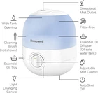 Honeywell Ultra Glow Light Changing Humidifier and Diffuser – Cool Mist White Product Details Brand: Honeywell Color: White Recommended Uses For Product: Office, Home Special Feature: Cool Mist Power Source: Corded Electric Capacity: 0.5 Gallons Model Name: Ultra Glow Light Changing Humidifier & Diffuser Product Dimensions: 7.87"L x 7.87"W x 8.82"H Light Source Type: LED Coverage: Small room Runtime: 24 hours Wattage: 12 watts Shape: Rectangular Auto Shutoff: Yes Number of Items: 1 Manufacturer: Kaz Unit Count: 1.0 Count Item Weight: 3.54 pounds Country of Origin: China Item model number: HUL530 Batteries required: No COOL MIST HUMIDIFIER – Honeywell Ultra Glow Light Changing Humidifier and Diffuser (HUL530) helps ensure proper humidity levels. Indoor humidity levels between 40-60% can help relieve cough/congestion, keep throat/nasal passages hydrated and more. ESSENTIAL OIL TWO WAYS – This small humidifier is an essential oil diffuser, too. You can add essential oils directly to the water tank, or use the oil tray for a more subtle fragrance experience. Essential oils not included. SOOTHING COLOR CHANGING LIGHTS – Cool mist humidifier with essential oil diffuser has customizable color changing tank lights, adjustable mist control and a directional mist outlet. It has no filter to change, a wide tank opening & runs for up to 24 hours. COUGH AND CONGESTION RELIEF – Humidifiers for home can be helpful during cold and flu season, when it’s difficult to sleep with cough and congestion. A humidifier can provide temporary relief by adding necessary moisture to the air. A BRAND YOU CAN TRUST – Honeywell has been keeping families comfortable in their homes for over 100 years with our full line of humidifiers, filters and more. The Honeywell Ultra Glow Light Changing Humidifier and Diffuser fills your air with refreshing moisture to help relieve dry air discomforts and also lets you relax and enjoy your favorite essential oils. During cold and flu season, or when the air is simply just dry, you can rely on this small humidifier for your entire family. It also offers calming essential oils two ways: you can add essential oils directly to the water tank, or use the oil tray for a more subtle fragrance experience. Essential oils not included. The calming ambiance gets even better with the glowing, color changing lights. Honeywell humidifiers for bedroom and beyond add necessary moisture to the air, and help ensure proper humidity levels in your home. Indoor humidity levels between 40-60% can help relieve cough and congestion, keep throat and nasal passages hydrated, temporarily relieve dry air discomfort, protect furniture, reduce static electricity and even keep plants healthier. This Honeywell humidifier and diffuser is a cool mist humidifier, and produces a fine, visible cool mist with a directional mist outlet. It has no filter to change, a quiet operation, adjustable mist control and a directional mist outlet to let you customize the moisture level in the air, making it a great choice for your family, even as a kids or baby humidifier. Plus, it has a wide tank opening that makes it easy to fill and clean, no filters to replace and it automatically shuts off when empty. It features an up to 24 hour run time.