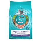 Important Note for Our Valued Customers: To offer you the best prices with free shipping, we occasionally experience shipping delays. If this happens, we’ll notify you immediately, issue a full refund, and invite you to place a new order at your convenience. To keep costs low, we sometimes reuse branded packaging boxes for shipments—we appreciate your understanding if you receive your order in repurposed packaging. Rest assured, all products we sell are 100% brand new, unopened, and freshly manufactured, including pet food and human-grade items, with a minimum 8-month shelf life remaining. If any issues arise, please contact us first—we’re committed to resolving them quickly. If you’re not completely satisfied, we offer a full refund with no hassle. Thank you for your trust and support! Highlights Natural adult dry cat food for hairball control features a natural fiber-rich blend with added vitamins, minerals and nutrients to help support her overall health Easily digestible, adult cat food features a SmartBlend of high-quality ingredients, including four antioxidant sources for a strong immune system Real chicken is the number 1 ingredient in this high-protein cat food recipe, which supports strong muscles, including a healthy heart Crunchy cat food kibble provides the textures cats love, and with added calcium, helps support her strong teeth and healthy gums Great tasting chicken cat food kibble features deliciously crunchy bites and is crafted in Purina-owned, U.S. Facilities with no artificial flavors or preservatives Spoil your pet with Purina products. Reward yourself with points on every purchase. Download the myPurina app today Description Get results you can see in your cat through the combined power of nature and research in Purina ONE +PLUS Hairball Formula adult dry cat food. Along with a great taste cats love, this easily digestible recipe includes a SmartBlend of high-quality ingredients that get to work in your cat. Driven by nature, the hairball control cat food starts with real chicken as the number 1 ingredient and has 38 grams of protein per cup, helping to support her strong muscles, including her healthy heart. A natural fiber-rich blend helps minimize and control hairballs, and four antioxidant sources in this hairball cat food help support her strong immune system. All this wholesome goodness comes together for a natural cat food recipe with added vitamins, minerals and nutrients that delivers 100 percent complete and balanced nutrition for your adult cat. With 100 percent nutrition and 0 percent fillers, every ingredient has a purpose. Our high fiber cat food supplies well-rounded nutrition and is crafted as part of a veterinarian-recommended brand so you can feel confident filling her dish. See the results Purina ONE can make with this +Plus Hairball Formula.