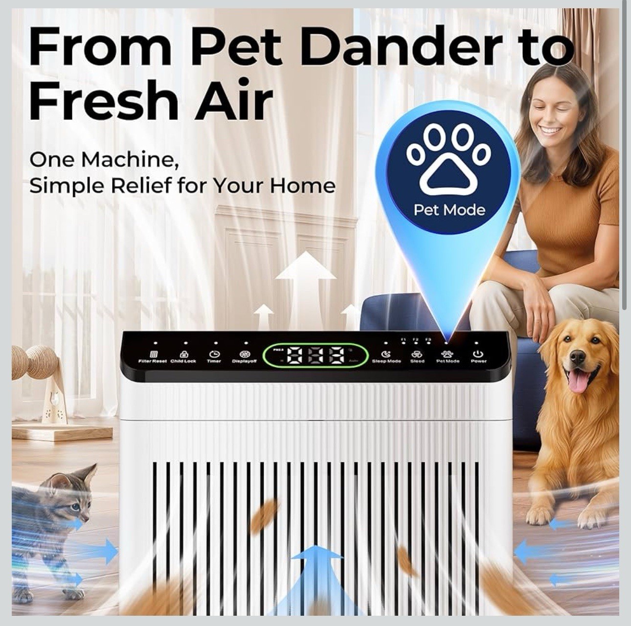 Air Purifiers for Home Large Room up to 2200sq.ft with Washable Filters, EVALIT Air Purifier for Bedroom with Fragrance, PM 2.5 Display Air Quality Sensor for Smoke Dust Odors, White, 1Pack+3Modes