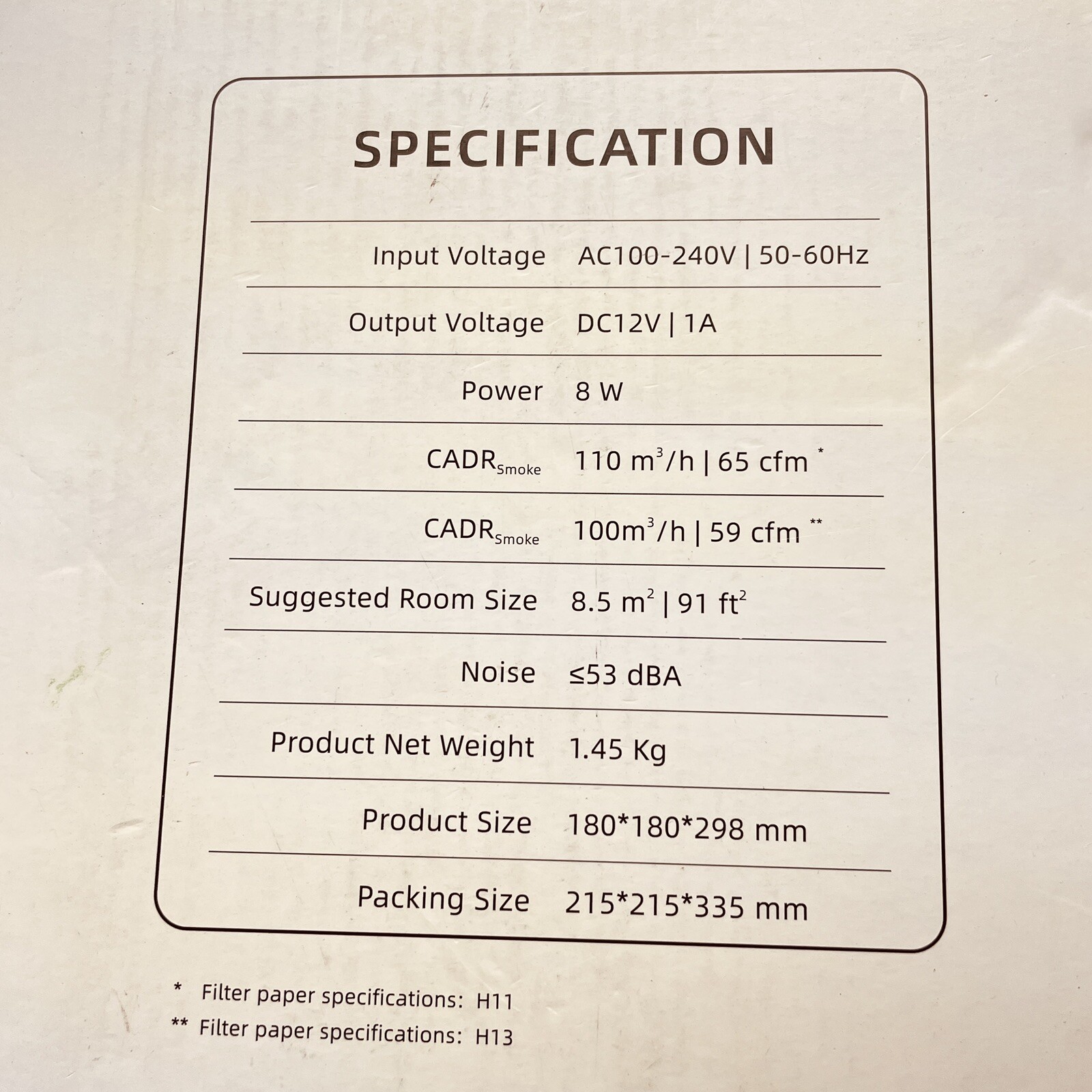 Air Purifier For Home, Up To 90 Ft Square, Open Box, Tested Working Good.