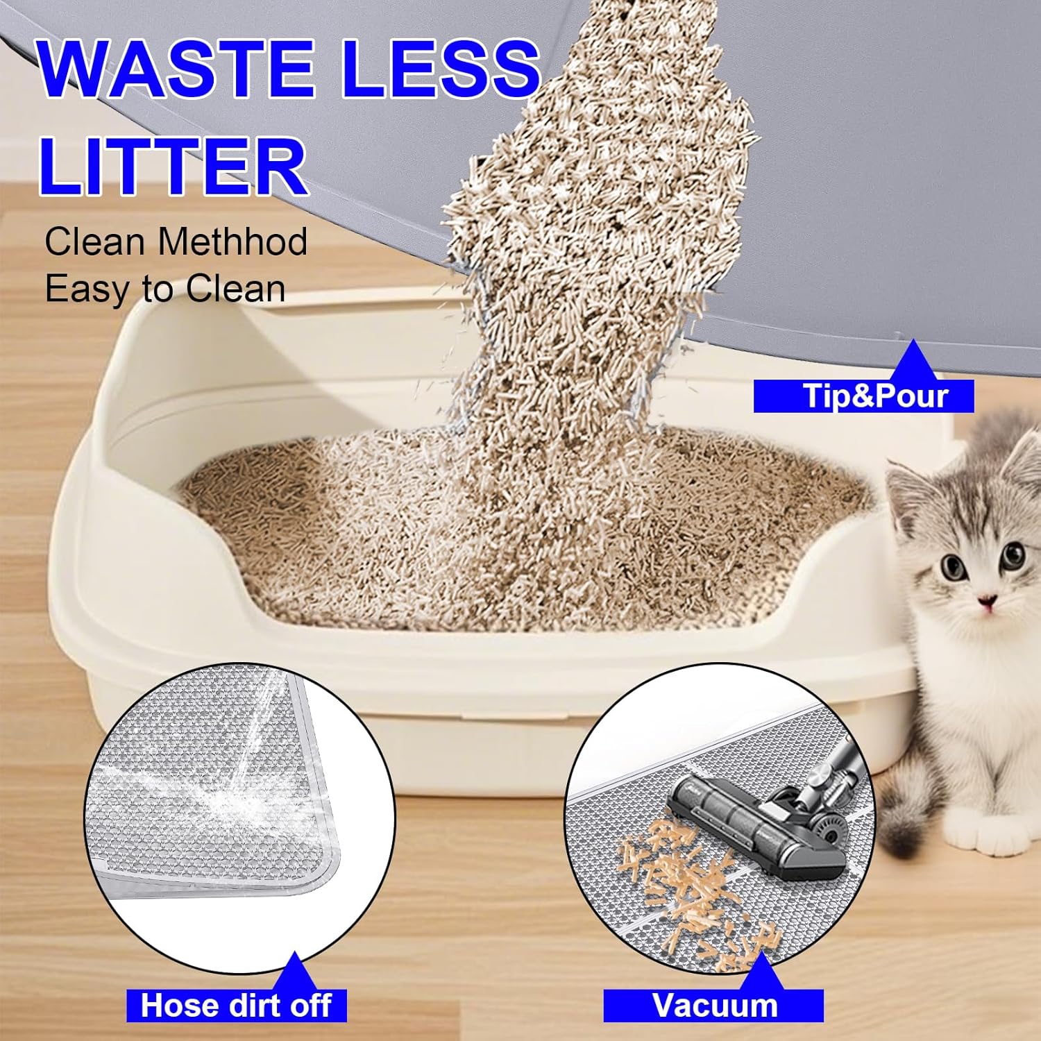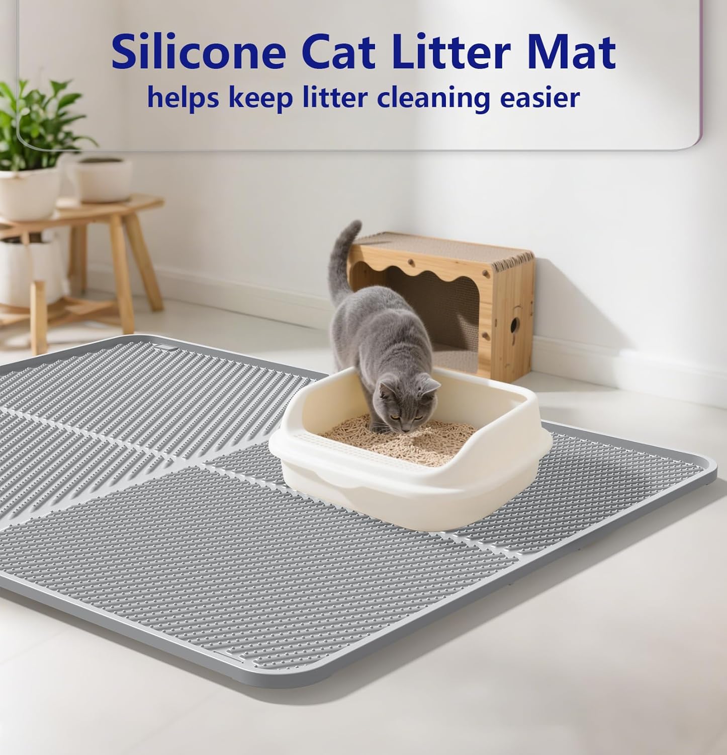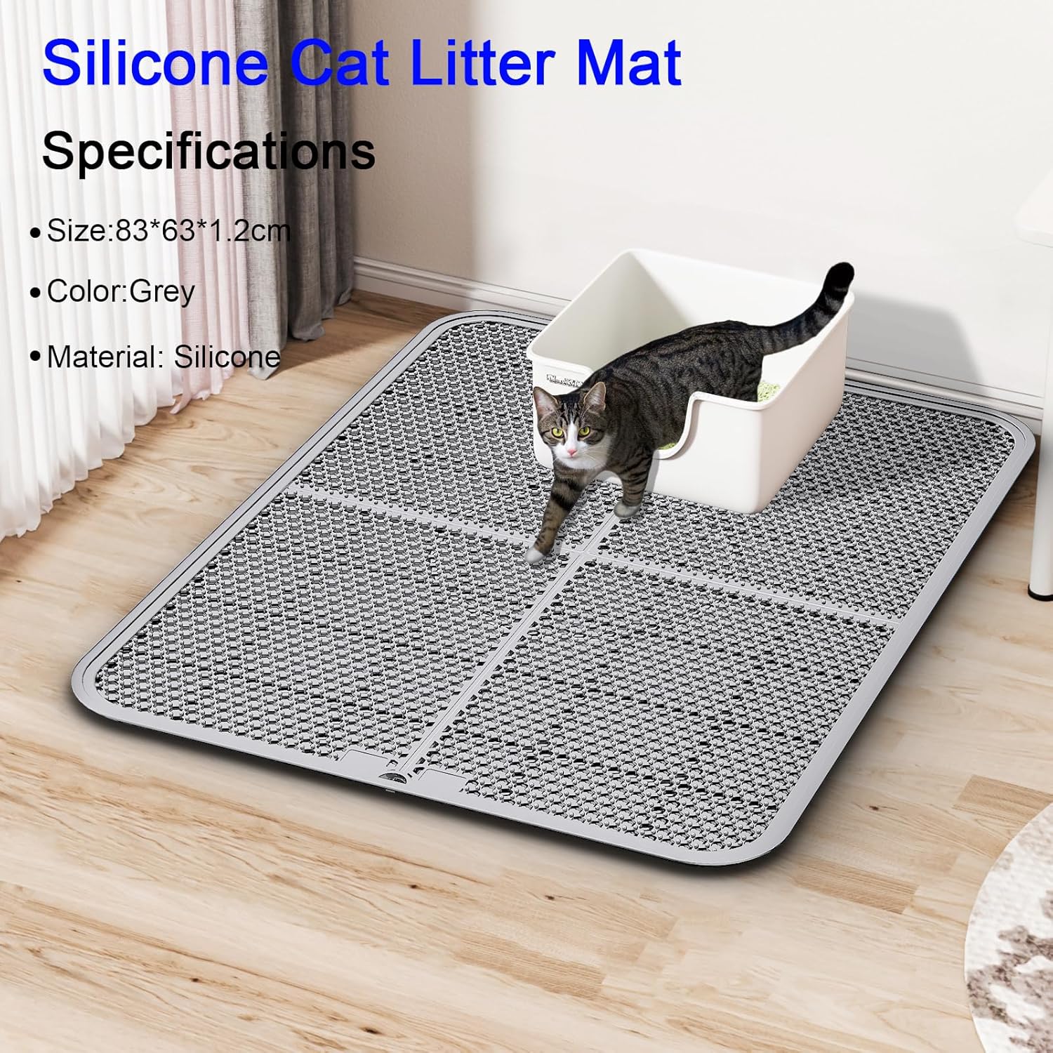 Large Cat Litter Mat, Large Kitty Litter Box Mat Waterproof Urine Proof Trapping, Easy Clean, Silicone Cat Supplies & Accessories for Indoor Pets (Grey, 32.67x24.8x0.47 in) Product Details Item Weight: 3.96 pounds Manufacturer: windhunt Item model number: HK25005 Item Package Dimensions L x W x H: 13.98 x 9.65 x 3.39 inches Item Dimensions LxWxH: 33 x 25 x 0.4 inches Item Weight: 4 Pounds Brand Name: windhunt Target Audience Keyword: house-cats Model Name: Cat Litter Mat Color: Grey Size: 32.67x24.8x0.47 in Number of Items: 1 Included Components: Cat Litter Mat Specific Uses for Product: Waterproof, Urine Proof, Easy Clean, Lightweight, Soft On Paws, Phthalate Free Product Dimensions : 33 x 25 x 0.4 inches; 3.96 Pounds Item model number : HK25005 Manufacturer : windhunt ❊【Environmental friendly material】: The cat litter mat is made of high-quality and environmental friendly silicone,which is soft,stretch and durable. the litter trapping mat is urine proof and waterproof,help to ensure that any moisture or urine will not penetrate its layer. ❊【Innovative design】: Double honeycomb hole design ,the cat litter catcher mat 2pack is easy for all the litters to be fell through the honeycomb hole into the bottom layer .the litter or urine and other garbage can be prevented from overflowing by the wall around of the cat trapping mat ,keep the floor clean. ❊【Anti-slip and scratch】: This silicone cat litter pads for floor waterproof feature an anti-skid bottom to keep it firmly in place, even when your cats jump in or out of their litter box.meanwhile, the cat silicone litter mat can bear scratched by your cats for a long time. ❊【Easy to use】: After opening the package ,you just lightly push it ,the litter catcher mat will appear flat platform, no folding trace. The durable silicone material is quick and easy to clean with mild soap and water - simply hose it off .without any residual odor and dirt. ❊【Various functions】: The silicone cat litter mat can be used as a feeder mat for your pets .meanwhile, can be used as a comfortable bed for your cats .the cat litter mats provides plenty of space to accommodate a variety of litter boxes and cat supplies for maximum placement options and convenience.