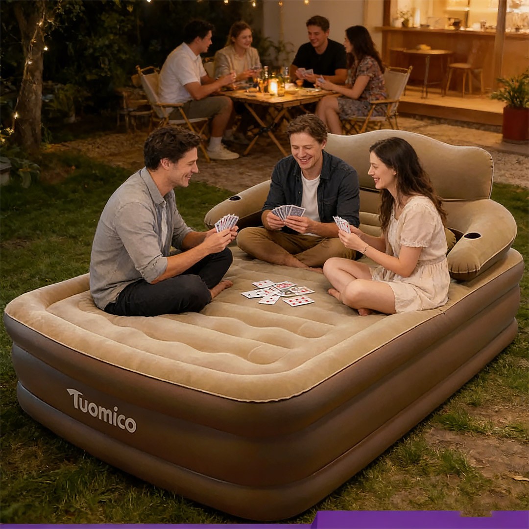 200*150*42cm Queen Size Inflatable Air Bed Mattress with Built-in Pump backrests