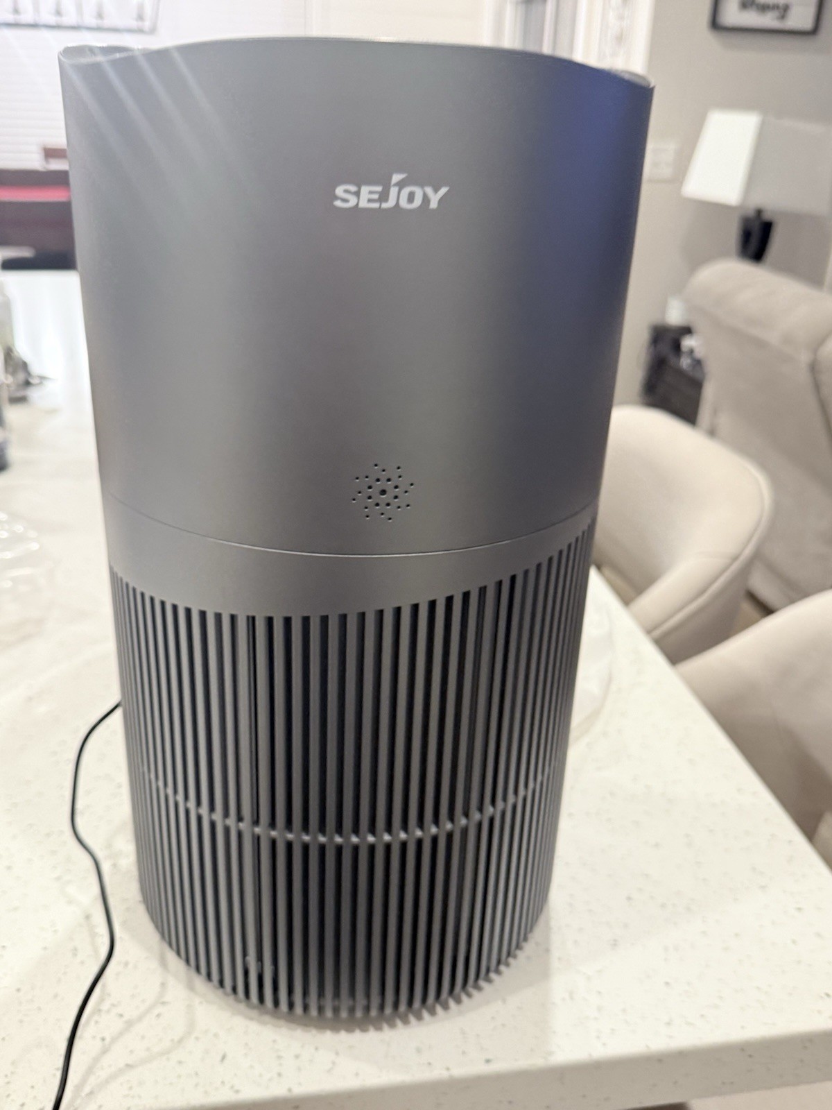 The SEJOY Air Purifier HEPA Filter is a sleek gray device designed for quiet operation in home or office spaces. With 360° coverage and a filtration technology of HEPA-Type and Pre-Filter, it effectively captures contaminants such as tobacco smoke, allergens, dust, and pollen. This portable air purifier has a coverage area of 60 sq ft with 3 speed settings and a filter life of 6 months. Its floor mounting and digital control style make it easy to use and maintain, providing clean air for any room in your space.
